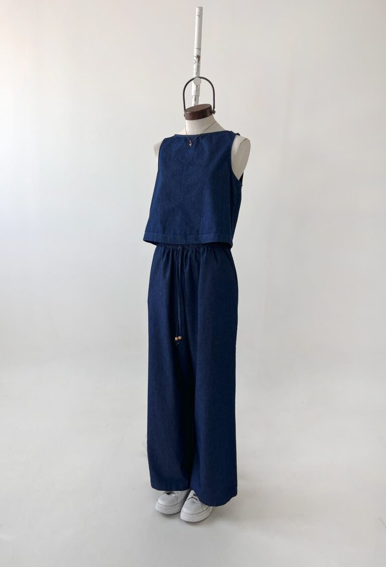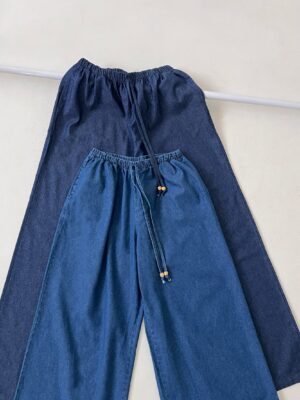 PANTALON DE DENIM LAVADO CON ELASTICO EN LA CINTURA Y BOLSILLOS LATERALES