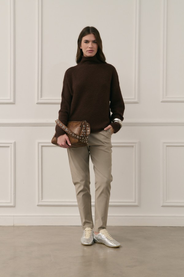 Pantalón de corte recto confeccionado en bengalina, una tela flexible y cómoda que se adapta al cuerpo manteniendo una silueta prolija. Cuenta con bolsillos
