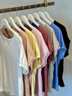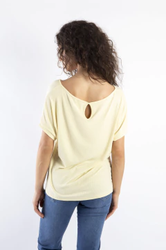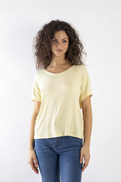 Remera de morley de manga corta, con calce relajado y escote en V con tiras cruzadas en la espalda