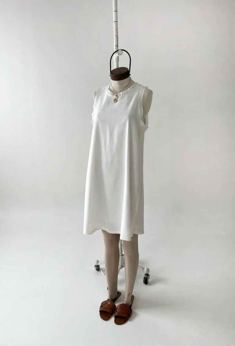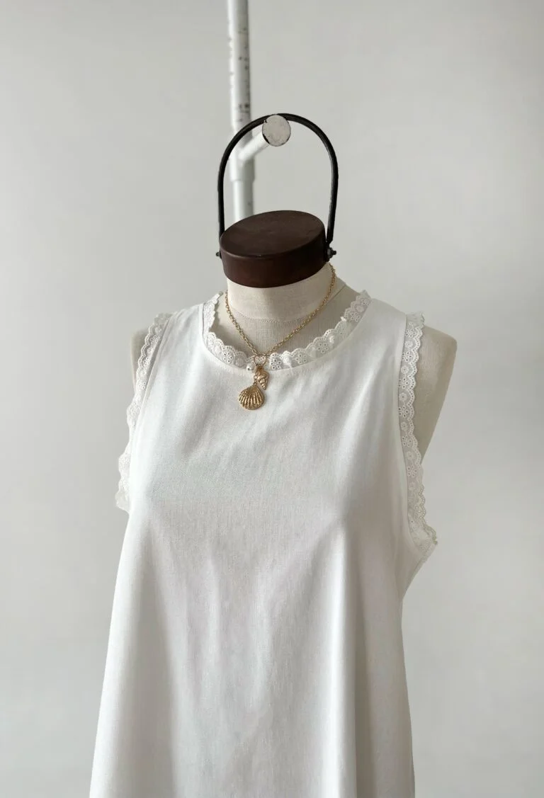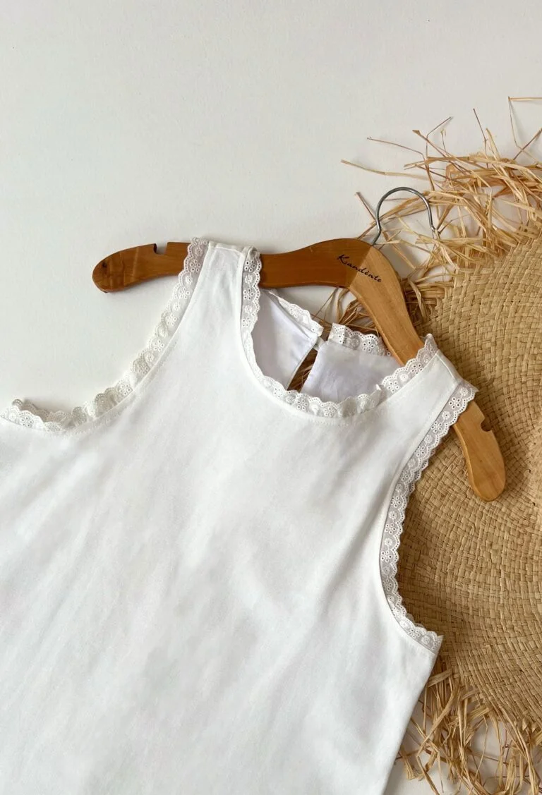 VESTIDO DE LINO Y VOILE CON PUNTILLA