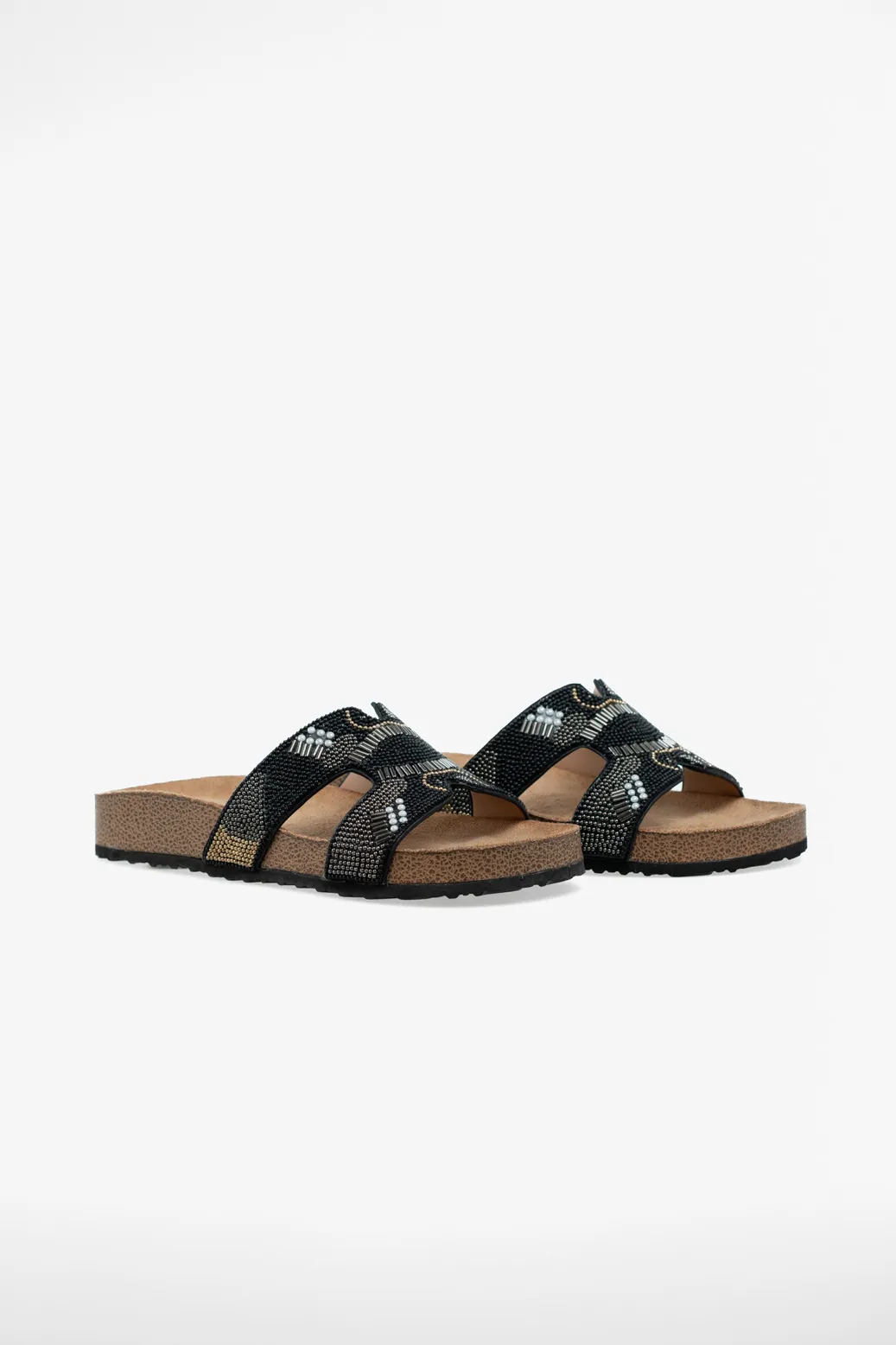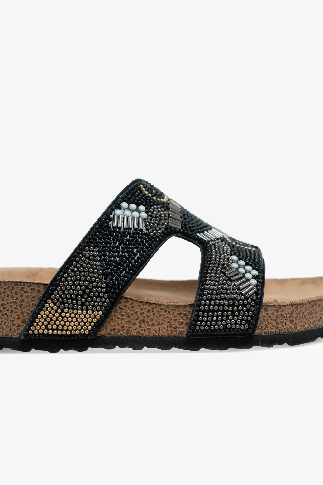 Zueco base birk con bordado de canutillos, la comodidad de su diseño y sus detalles lo convierten en tu mejor aliado para esta temporada.